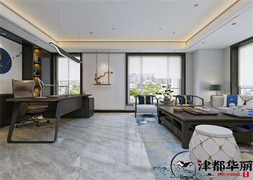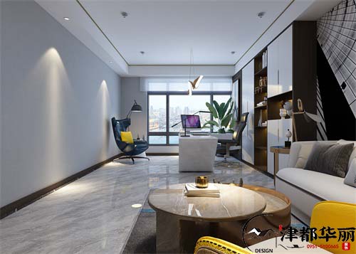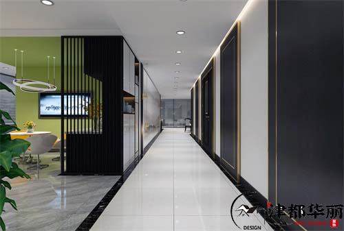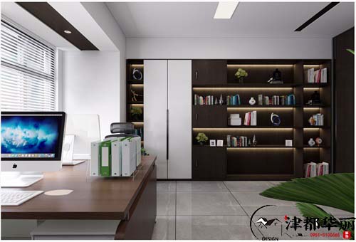 在此次办公案例装修中,设计师用最简约的设计手法,来设计装修一个时尚舒适的办公环境。整体色彩运用主要以黑白灰为主,灰色的地砖,沉稳大气,而且耐脏,墙面整体设计了简洁而实用的柜体,白色的柜体把整体空间衬托的纯净明亮,同时也增加了空间的层次感,整面柜体的收纳空间也非常充足,对于办公文件和物品的较多的公司来说,这样会让空间显得更加干净整洁。在经理办公司的设计中,设计手法也是如此,简约时尚,沉稳干练,只不过柜体颜色换成深色,给办公者提供一个相对雅静而又沉稳的办公环境。在会议室的设计中,空间宽敞明亮,会议室和办公区用玻璃隔开,可以在视觉上延伸空间,让空间看着更为宽敞。细节处我们也不忽略,我们在办公室的墙角和窗台处摆放了一些精致的室内景观盆景,办公桌也摆放一些风水植物或绿色花卉盆栽,既可以美化环境,提升空间的生机,又可起到净化空气的作用。所以整体装修下来,没有过多繁杂的装饰,饰品使用的并不多,但每一个都别具一格,而且造型、线条简单,极具个性化。简洁的装修,也让家具、软装表现更出众,室内布置按功能区分的原则进行,桌位布置与空间密切配合,色彩造型紧跟时尚潮流,以个性化简单化装修方式打造舒适办公环境。