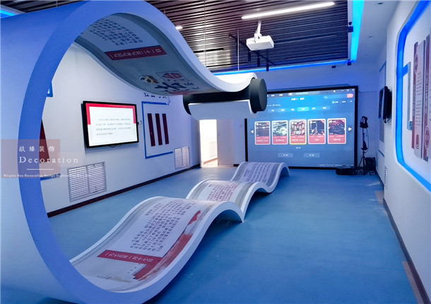 本案在施工中多媒体教室投影设备、实物展示台、多媒体计算机和屏幕的选择,媒体教室设备的控制及连接。内部墙面处理过后,多媒体室内部空间颜色形体独特,营造一种先进化,未来感的氛围。