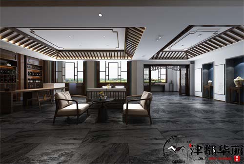清风古韵,幽静雅致,形容的就是今天的案例设计。大多数的酒庄在空间功能上已经偏向于休闲娱乐,所以在酒庄的装修设计上,风格也是多种多样,在今天的案例中,设计师确定的空间主题风格是将现代简约风格和中式元素相融合,整体空间效果上更加的充满意境。大厅的设计,从吊顶、窗户、家居摆设都用了中式元素的设计,体现了空间的古香古色,到处弥漫着书香雅苑的氛围感,地面和墙面用石材和大理石装饰,又让空间更加的严整大气,同时散发着多种耐人寻味的空间感觉。餐厅休闲区的设计文艺气息更加的浓厚,背景墙和装饰画起到了画龙点睛的作用,将空间装饰的意境十足,安静典雅的空间氛围也让我们更加的舒适和放松。公区、走廊、卫生间的设计简约时尚,且散发着一种幽静、神秘的独特气质。所以整体的设计,更加像是拥有现代时尚感和功能性的古代山庄,带给我们的体验感就是既熟悉,又让我们好奇以及带给我们惊喜。