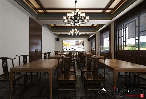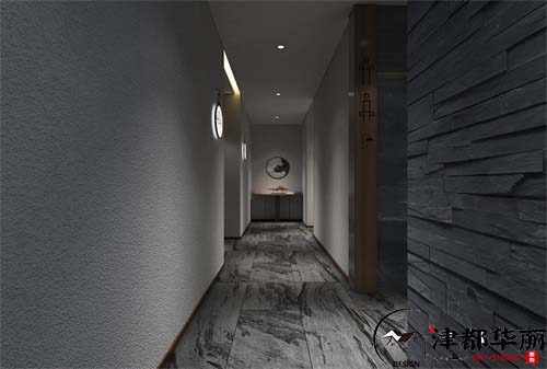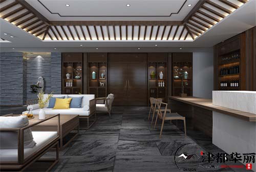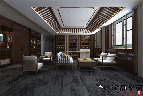 本案例是集合了商业与休闲为一体的空间,所以既要突出空间的商业性质与产品,还要打造一个轻松舒适的休闲环境。在酒庄的大厅,设计了商品区以及品酒区,时尚休闲的装修风格,符合商品的特性,深色系的地面和墙面奠定了空间沉稳大气的基础格调,让我们感受到了品质感,顶面的造型带点简洁的中式感觉,古典文雅,与木饰酒柜相互呼应协调,为空间增添了一份文化古韵,陶瓷品的装饰点缀,提升了空间的艺术品位,整体空间的气质时尚典雅,古典文艺,突显了酒庄的品质。餐饮区的设计简洁大气,简洁的造型让空间更加整洁舒适,富有层次感,实木材质的中式餐桌椅非常的上档次,是品质的象征,用中式元素打造背景墙,素雅文艺,美观大气,设计师将现代简约的时尚感与传统中式文化的艺术气息结合在一起,让我们感受到了全新的空间体验。走廊和楼梯间的氛围营造的非常雅静,青砖白墙,给人一种幽谧复古的美感。空间的时尚与艺术会为顾客带来更好地休闲体验,也是酒庄整体的形象和品质的体现。